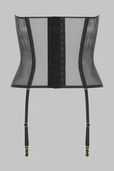 The corset draws on the charm of French chic that catches the eye but is never indecent. A transparent piece with clean lines created in deepest black.