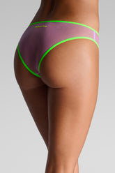 Briefs in transparent pastel tulle, highlighted with ultra-flat fluorescent elastic at the waist. Light and comfortable cut. Contrasting Maison Close logo at the back. No cotton lining for complete transparency.