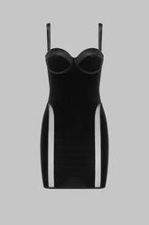 ROCOCO dress in velvet, inspired by corsetry, designed to sculpt the silhouette with softness. Flexible steel boning structures the cut and cinches the waist, while the lightly padded underwired cups with removable inserts create a perfectly mastered push-up effect.