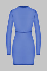 This blue colour short dress features soft mesh with a sheer iridescent appearance.