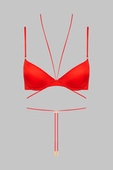Underwired balconette bra, combining satin softness and style. Designed to fit the shape of your breasts perfectly thanks to its seamless moulded cups. Totally removable and adjustable thanks to a unique adjuster and gold lipstick accessories by Maison Close, the lacing around the neck enhances your décolleté while allowing you to personalise it as you wish. The flat and adjustable fine straps ensure a perfect fit. An elasticated band around the chest perfectly hugs and shapes the bust. Adjustable hook-and-eye fastening at the back.