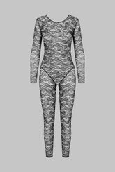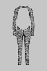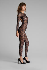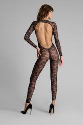 This open-backed catsuit features mostly recycled openwork lace. Fitted style with flat elasticated trim. Its plunging backless style takes us back to the '80s. Wear on its own or under a coat from the Maison Close wardrobe.