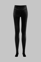 At the back, a V-shaped cut enhances and contours the buttocks. Like tights, the leggings extend into closed feet for a continuous velvet look down the leg. A graphic V-cut detail on the foot adds a couture signature to the silhouette.