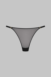 This black colour mini thong features soft mesh with a sheer iridescent appearance.