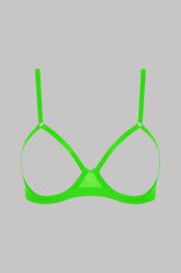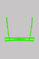With its underwiring and neon tulle, the cupless bra is the collection's cheekiest style.