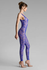 This neon-coloured open-backed catsuit features mostly recycled openwork lace. Fitted cut edged with flat elasticated trim. Its plunging neckline, accentuated armholes and bold backless style take us back to the '80s. Wear on its own or under a shirt from the Maison Close wardrobe.