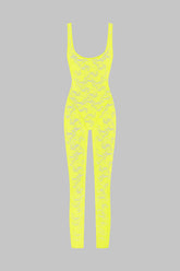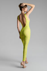 This neon-coloured open-backed catsuit features mostly recycled openwork lace. Fitted cut edged with flat elasticated trim. Its plunging neckline, accentuated armholes and bold backless style take us back to the '80s. Wear on its own or under a shirt from the Maison Close wardrobe.