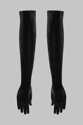 ROCOCO opera gloves in full velvet, designed as a stage-worthy accessory that extends the line of the arm. The soft fabric caresses the skin and moves with fluidity, offering a dramatic, couture allure.