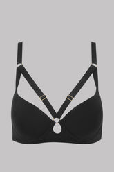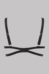 Soutien-gorge bondage en microfibre opaque. Harnaché d’élastiques au décolleté et au dos. Coques push-up recouvertes de microfibre avec armatures. Dos ajouré avec agrafage ajustable.