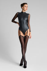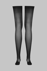 Maison Close’s signature rolled-top stockings. The black shade elegantly enhances the legs for a unique style. A silky 40-denier voile to be paired with a suspender belt for a flawless fit.