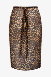 The SAFARI short wrap skirt, crafted from sheer leopard silk voile, grazes the skin with lightness. Its tulip cut and rounded front slit on the left delicately reveal the leg with every movement. It ties at the waist with two straps for a simple and natural fit.