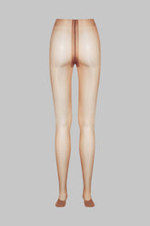 High-waisted glossy-finish tights made of a very fine delicate 10 denier voile. Oiled effect for a feeling of natural moisturisation. High waist and comfort gusset on the crotch. Shaped heels so they fit the foot better.
