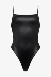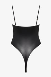 The Splash One-Piece Swimsuit with Straps seduces with its lightweight microfiber and wet-look finish, embracing the body like a second skin. Its sculpting, high-cut thong silhouette subtly enhances every curve. Lined at the crotch for added comfort, this piece is both alluring and wearable. Non-removable straps, adjustable with fine gold-tone metal accents, offer a perfect fit and a luminous touch.