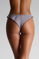 Tanga in transparent chiffon, light and airy. The elastic waistband gently follows the body’s curves. The high-cut French silhouette is finished with delicate ruffles that highlight the hips and bring a retro 80s flair.