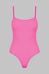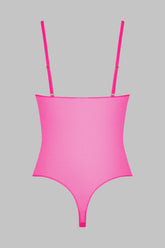 This thong body with its neon colours features soft tulle with a sheer iridescent appearance.