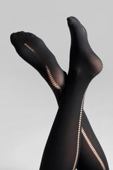 The opaque Infinite Line tights enhance the silhouette with their sculpting 60-denier weave. Their openwork lines, which can be worn at the front or back, elegantly highlight the legs. A high, flat waistband accentuates the waist.