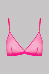 This triangle bra with neon colours and no underwiring features soft tulle with a sheer iridescent appearance.