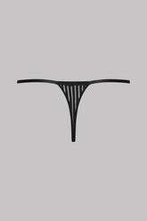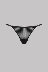 Mini perizoma regolabile in microfibra con righe traforate, trasparenti e grafiche. Elastici con finiture argento regolabili sui lati per adattarsi a tutte le silhouette.