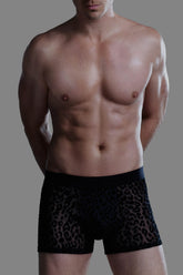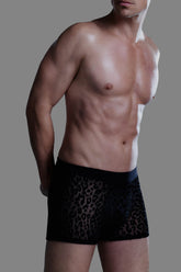 Con il suo tulle interamente leopardato dal tocco vellutato, che evoca un'immaginazione selvaggia, i boxer semitrasparenti prendono in prestito dal femminile l'audacia dell'appartenenza.