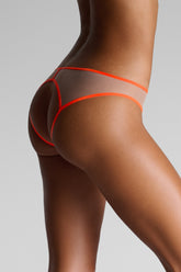 Slip con cavallo aperto in tulle trasparente color pastello, impreziosito da un elastico ultrapiatto color neon. La nostra caratteristica scollatura a cuore sul retro per una maggiore leggerezza. Logo Maison Close in rilievo sul davanti. Senza fodera per una trasparenza totale.