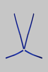 Harness Signature neon firmato Maison Close. Elastici collegati da un anello, con finiture dorate regolabili. Da indossare al décolleté o sul retro in base ai tuoi desideri. Si può aprire tramite un gancio sul retro.