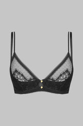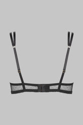 Reggiseno modello quart cup che abbina pizzo gotico sul davanti e tulle plumetis. Con ferretto, imbottitura e doppie spalline elasticizzate sottili e regolabili. Sbottonabile sul davanti per un effetto seni scoperti e regolabile con un gancetto sul retro.