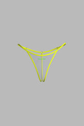Micro-perizoma in tulle trasparente color pastello, strutturato da un elastico ultrapiatto color neon. I lati sono regolabili con cursori dorati per una vestibilità precisa. Un anello centrale sul retro accentua la parte bassa della schiena. Il logo Maison Close è impresso sul davanti. Sfoderato per un effetto completamente trasparente.