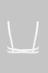 Il reggiseno aperto con imbracatura Pure Tentation gioca con i confini del visibile. La sua costruzione grafica in tulle trasparente e microfibra opaca struttura il seno rivelandolo con audacia controllata.