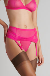 Il reggicalze Corps à Corps neon fluo è il pezzo iconico che rende vitaminici i completi intimi, dai più sobri ai più arcobaleno.