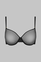 Reggiseno a balconcino con ferretto in tulle di una trasparenza assoluta. Coppe modellate senza cucitura che sposano e modellano perfettamente il seno. Chiusura sul retro con un gancetto liscio e sottile. Spalline sottili, staccabili e regolabili.