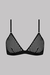 Reggiseno a triangolo in microfibra con righe traforate, trasparenti e grafiche.