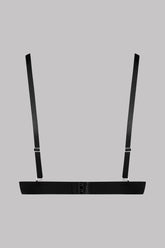 Coppe a triangolo senza ferretto. Un'ampia fascia elasticizzata e rivestita di microfibra a tinta unita sotto il seno offre un ottimo sostegno. Chiusura regolabile con gancetto sul retro. Spalline elastiche, rimovibili e regolabili con finiture argento.