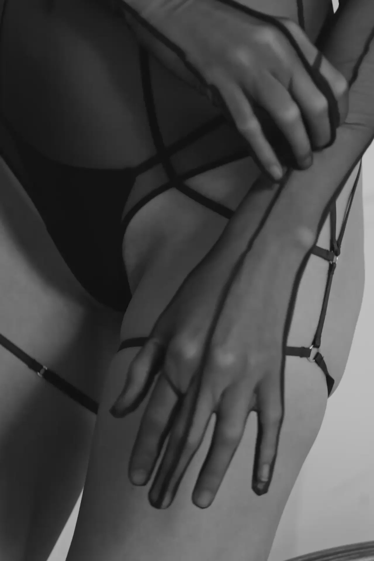 Possibilità di infilare il foulard negli anelli sul davanti e nei due regolatori aggiuntivi sul retro delle spalline per vestire la nudità.