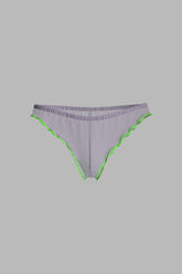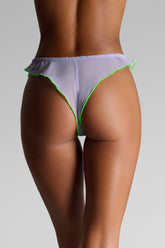 Perizoma in chiffon pastello con finiture fluo. Un taglio francese ultra-femminile con elastico in vita e delicati spacchi a balze allunga le gambe e rivela elegantemente i fianchi. Sfoderato per una trasparenza totale.