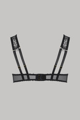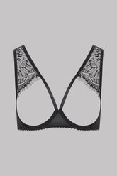 Soutien-gorge ouvert en dentelle recyclée. Forme alliant une dentelle à cils et un tulle transparent bordé d’un élastique à picot. Les armatures sont recouvertes de tulle. Double bretelles élastiques et réglables, fermeture ajustable par un agrafage au dos.