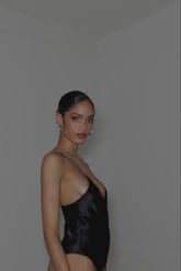 Retenus par un porte-jarretelles Maison Close, ces bas nylon allongent la silhouette sans aucune démarcation. À monter jusque sous les fesses pour un effet cœur parfait.