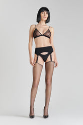Bas coupés roulés identitaires de Maison Close, résille fine et douce.