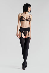 Bas coupés roulés identitaires de Maison Close. Coloris noir opaque.