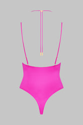 Body string bretelles alliant douceur satinée et style élégant. Un dos ravageur structuré de fines bretelles plates et réglables et d’une échancrure style années 80 assumée. Un jeu de laçage délicatement plissé à l'avant offre un ajustement d’ouvertures élégantes grâce à un régleur unique et des accessoires lipstick dorés signés Maison Close, à ajuster selon vos envies. Fermeture réglable par agrafage à l'entrejambe.