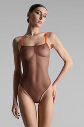 Le body string au coloris nude se pare d'un tulle doux à la transparence irisée.Bretelles Signature amovibles et réglables aux finitions dorées. Interchangeables à souhait avec les autres Signature disponibles dans plusieurs coloris. L’occasion pour chaque Muse de créer son mix and match survitaminé.