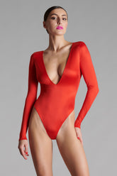 Body string échancré manches longues alliant douceur satinée et style unique. Un décolleté V plongeant et suggestif sublime la silhouette. Le dos est complètement dévoilé par un jeu de laçage délicatement plissé jusqu’au creux des reins. Le laçage dans le cou est ajustable grâce à un régleur unique et des accessoires lipstick dorés signés Maison Close. Fermeture ajustable par un agrafage à l’entrejambe.