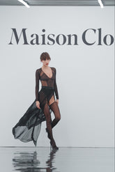 Cette collection Maison Close puise dans le charme d’un chic suranné qui capte le regard sans jamais l’offenser. Des pièces tout en transparence dont les lignes sont franches et la teinte dahlia noir légèrement poudrée.