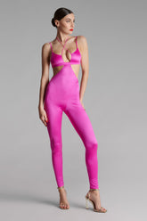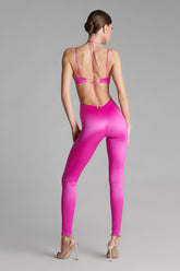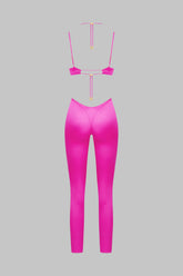 Catsuit encolure brassière alliant douceur satinée et style unique. Les bonnets sans couture sont élégamment structurés par un plissé au décolleté. Le laçage tour de cou, repositionnable et ajustable grâce à un régleur unique et des accessoires lipstick dorés signés Maison Close, sublime votre décolleté tout en permettant une personnalisation selon vos envies. Les fines bretelles plates et ajustables assurent un ajustement parfait. Une bande élastique en tour de buste épouse et galbe parfaitement la poitrine. Fermeture par agrafage ajustable au dos. L'empiècement string échancré au dos allonge gracieusement la silhouette, ajoutant une touche de sensualité à cette pièce exceptionnelle.