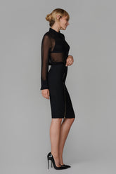 Associée aux jupes et pantalons du vestiaire ou en superposition aux pièces de lingerie Maison Close, la chemise longue peut créer une multitude de looks sophistiqués.