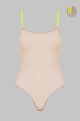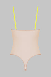Le body string au coloris nude se pare d'un tulle doux à la transparence irisée.Bretelles Signature amovibles et réglables aux finitions dorées. Interchangeables à souhait avec les autres Signature disponibles dans plusieurs coloris. L’occasion pour chaque Muse de créer son mix and match survitaminé.