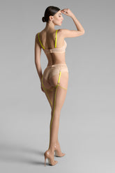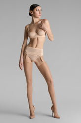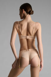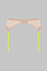 Le porte-jarretelles au coloris nude se pare d'un tulle doux à la transparence irisée. Fermeture au dos par un agrafage.Jarretelles élastiques Signature amovibles et réglables aux finitions dorées. Interchangeables à souhait avec les autres Signature disponibles dans plusieurs coloris. L’occasion pour chaque Muse de créer son mix and match totalement survitaminé.