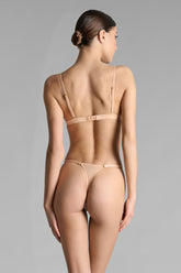 Le soutien-gorge triangle sans armatures au coloris nude se pare d'un tulle doux à la transparence irisée.Une large bande élastique placée sous la poitrine apporte un bon maintien. Fermeture au dos par un agrafage confortable.