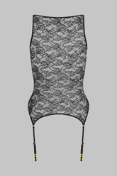 Le débardeur porte-jarretelles se pare d’une dentelle ajourée majoritairement recyclée. Bordé d’un élastique plat, sa forme souligne les courbes pour un style unique. Quatre jarretelles Signature amovibles et réglables aux finitions dorées sont interchangeables à souhait avec les autres jarretelles Signature disponibles dans plusieurs coloris. L’occasion pour chaque Muse de créer son mix and match unique.