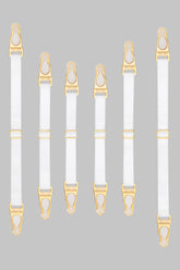 Six double-jarretelles Signature noires amovibles et réglables aux finitions argentées. Les attaches double sens permettent d’accessoiriser vos bas avec toute votre lingerie et votre prêt-à-porter Maison Close sans avoir besoin de porte-jarretelles. À jouer selon vos envies, l’occasion pour chaque Muse de créer son mix and match.