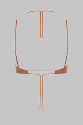 Soutien-gorge brassière sans armatures, élaboré dans un jersey fin aux reflets brillants et subtilement transparents. Les bonnets moulés sans couture sont élégamment structurés par un plissé au décolleté. Le laçage tour de cou, repositionnable et ajustable grâce à un régleur unique et des accessoires lipstick dorés signés Maison Close, sublime votre décolleté tout en permettant une personnalisation selon vos envies. Les fines bretelles plates et ajustables assurent un ajustement parfait. Une bande élastique en tour de buste épouse et galbe parfaitement la poitrine. Fermeture par agrafage ajustable au dos.
